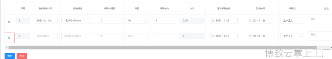 1,点击“+批量创建采购申请”按钮,进入采购申请