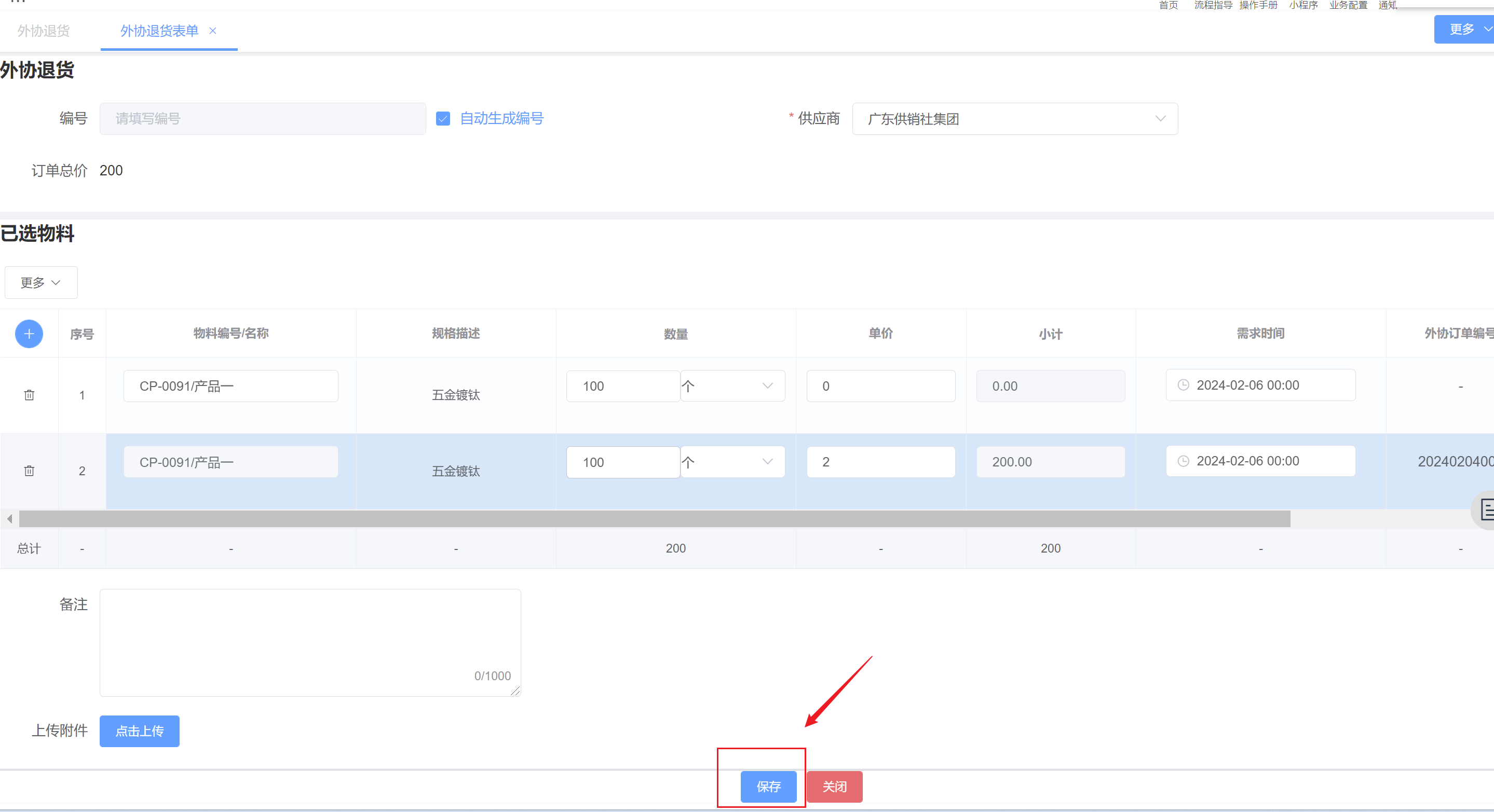物料表单可按照外协订单添加,在【更多-按外协订单添加】
