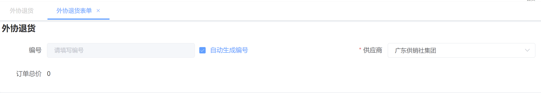 在外协退货单界面,点击“添加”进入外协退货单表单。